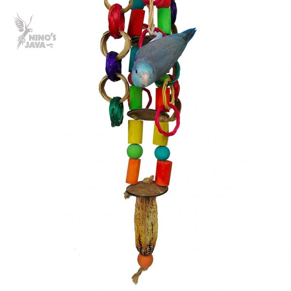 CHAIN REACTION is ready to be jingled and jangled! COLOURFUL reed rings form FUN chains. Let your bird react to CLIMBING, PLAYING and EXPLORING on the HUGE Chain Reaction.